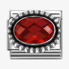 The Nomination Classic CZ Beaded Red Oval Link features a stainless steel plate featuring a stunning CZ red oval surrounded by intricate silver beading.