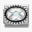 The Nomination Classic CZ Beaded White Oval Link features a stainless steel plate featuring a stunning CZ white oval surrounded by intricate silver beading.
