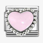The Nomination Classic Dotted Pink Raised Heart Link features a stainless steel plate featuring a raised pink heart surrounded by sterling silver beads.