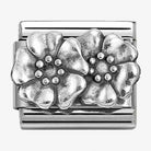 The Nomination Classic Double Flower Link features a stainless steel plate featuring two oxidised sterling silver flowers. The oxidised sterling silver provides a stunning visual effect, adding depth and dimension to the link.