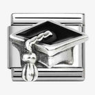 The Nomination Classic Graduation Hat Link features a stainless steel plate featuring a silver graduation hat design with black enamel accents. The perfect way to celebrate a graduation!