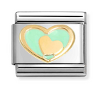 Original Nomination Composable Classic Link for Composable bracelet in stainless steel with bonded yellow gold Green Heart-Gold Heart symbol with Green enamel. This Link captures that sentiment of undying love and is the perfect way to celebrate a special bond.