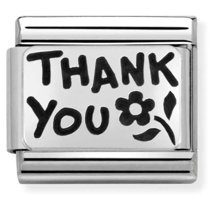 Shop the Classic Silver 925 plated "Thank You" Link from Nomination with black enamel detail.