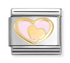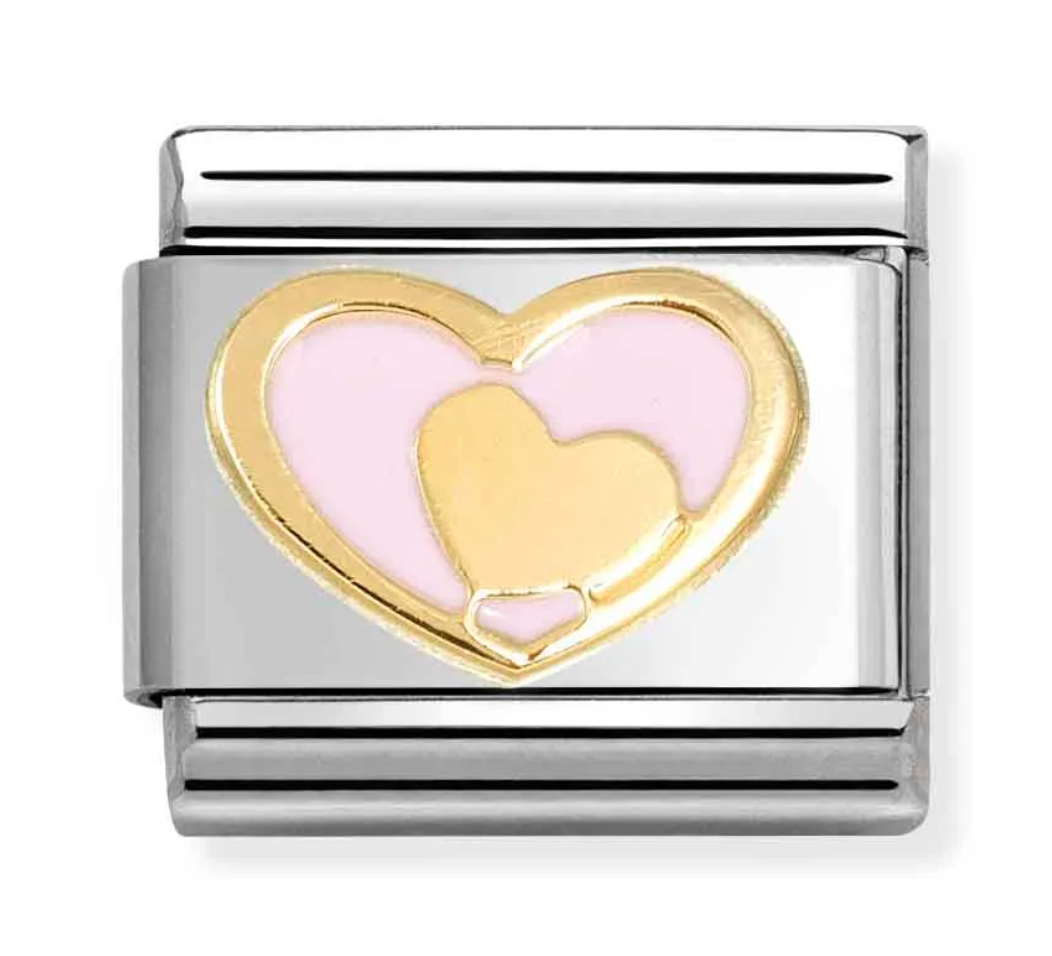 Original Nomination Composable Classic Link for Composable bracelet in stainless steel with bonded yellow gold Pink Heart-Gold Heart symbol with Pink enamel. This Link captures that sentiment of undying love and is the perfect way to celebrate a special bond.