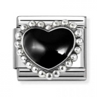 The Nomination Classic Silver White Dotted Heart Link features a stainless steel plate with a raised white enamel heart design. The heart is beautifully surrounded by sterling silver beads, adding charm and elegance to your bracelet.