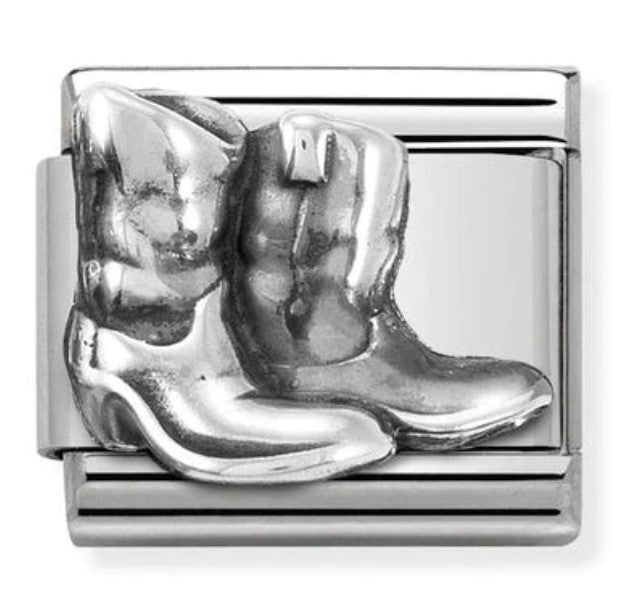 The Nomination Classic Silver Boots Link features a stainless steel plate with a silver boot design.