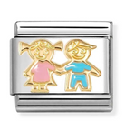 Shop the Classic Pink/Blue Sister & Brother Link from Nomination. A silver stainless steel link featuring a sister and brother design coloured with pink and blue enamel.