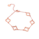 Elegant with a touch of sparkle, the Open Clover Bracelet in Rose Gold is a beautiful symbol of luck, charm, and refined style. This delicate bracelet features five open clover pendants gracefully spaced along the chain, creating a light and airy design that’s perfect for everyday wear.