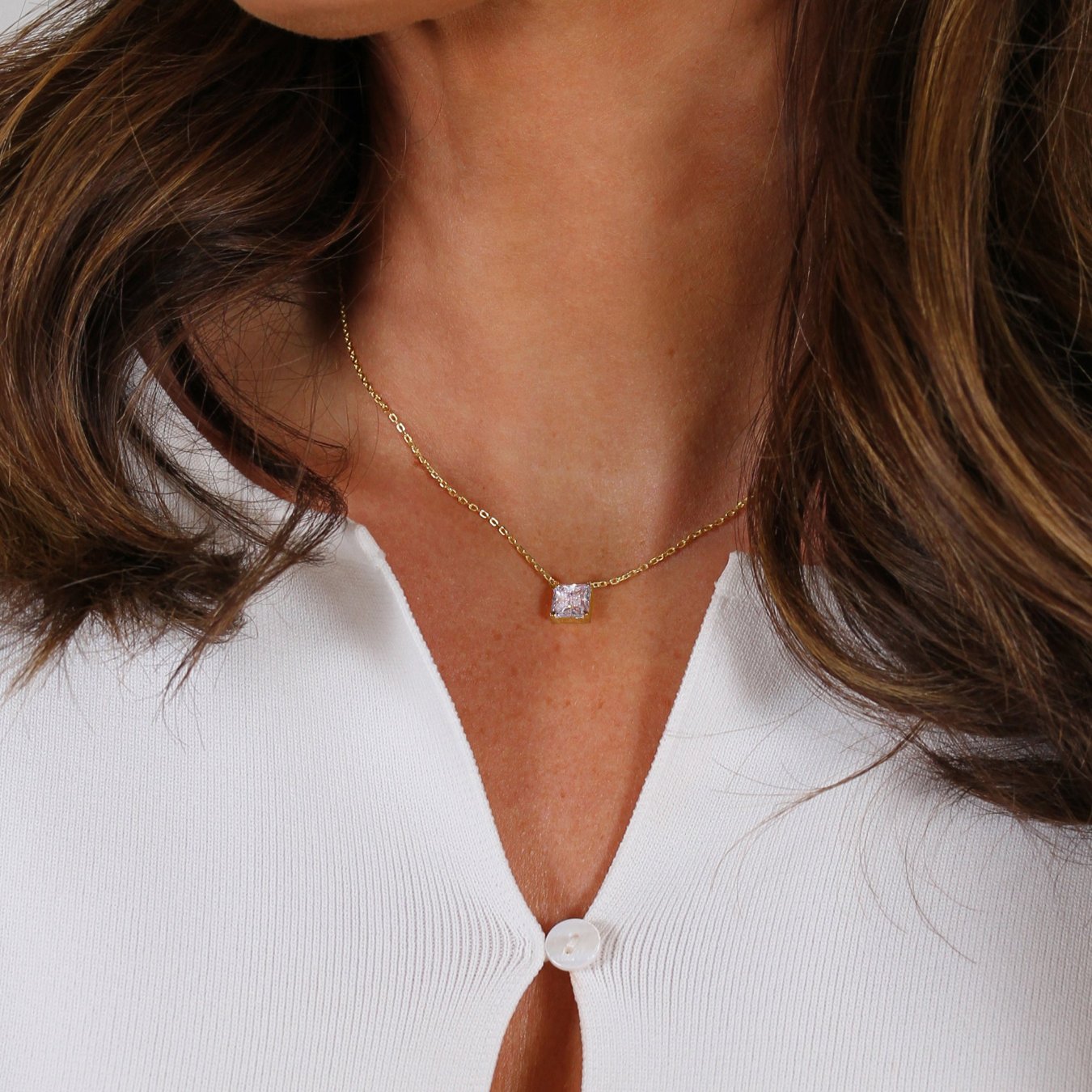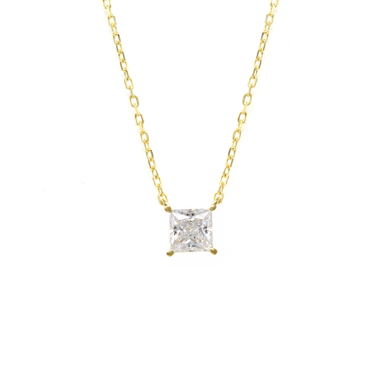 This necklace features a cubic zirconia feature stone on a yellow gold chain.
