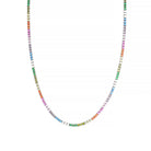 Add a vibrant twist to a classic with the Rainbow Tennis Necklace in Silver. Crafted from durable, waterproof stainless steel that resists fading and tarnishing, this necklace is designed to keep its shine day after day.