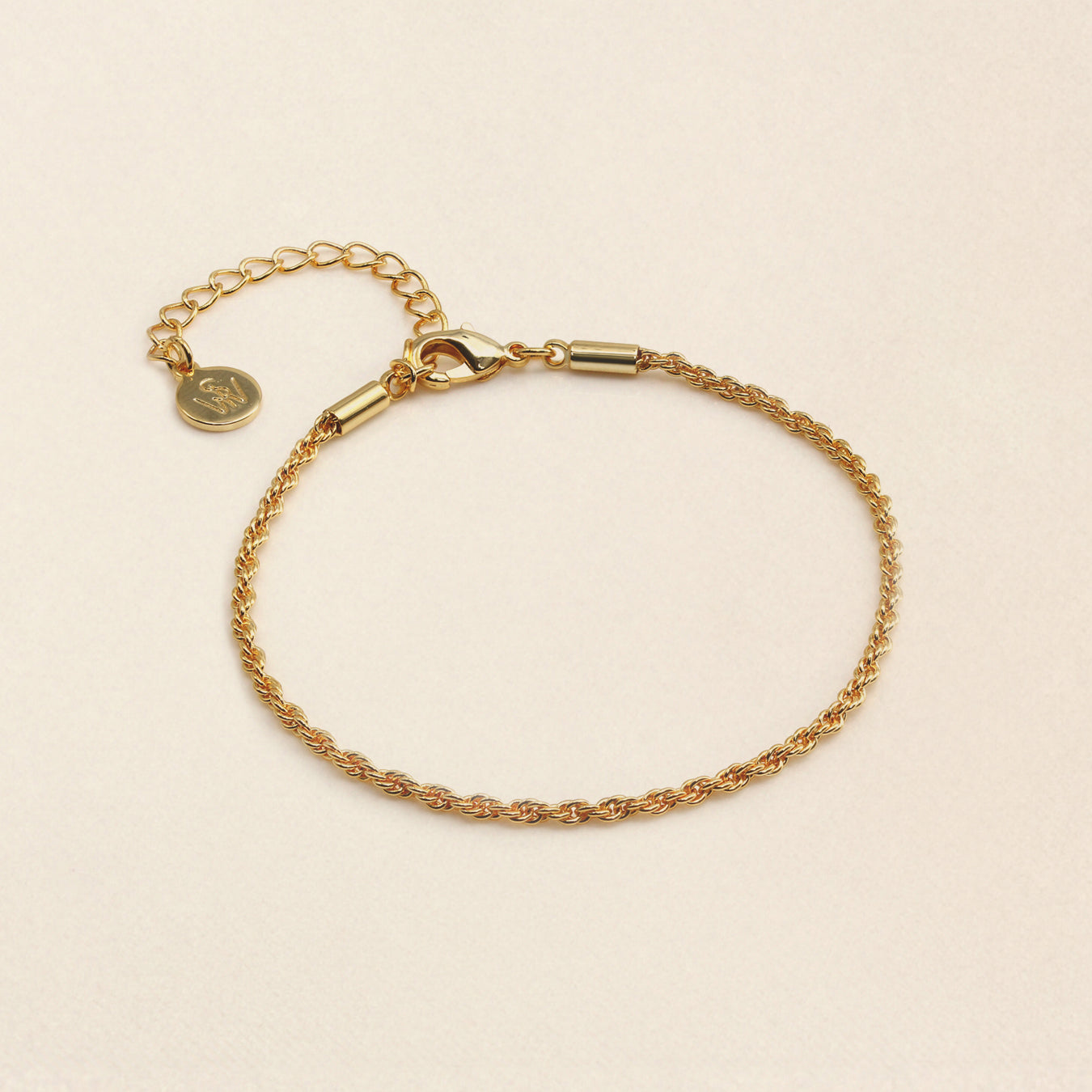 A 2mm rope chain design coated in 18k yellow gold. Perfect for stacking with your other favourite bracelets or even wearing alone.