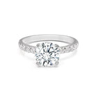 This round moissanite ring is set on an 18ct gold band, and available in white gold, yellow gold or rose gold.