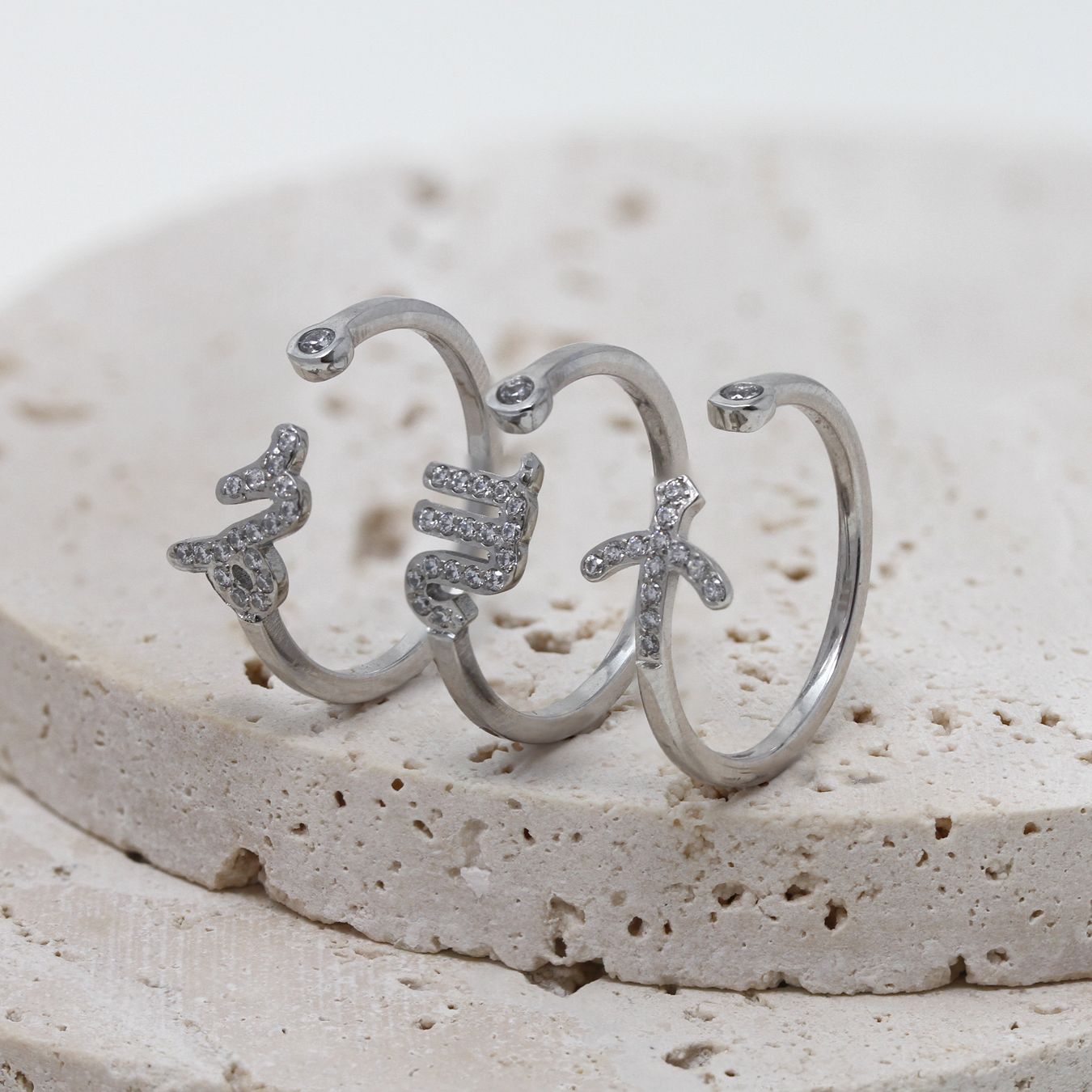 This stunning Sagittarius Ring in Silver is crafted from stainless steel and features dazzling CZ feature stones on an adjustable ring.