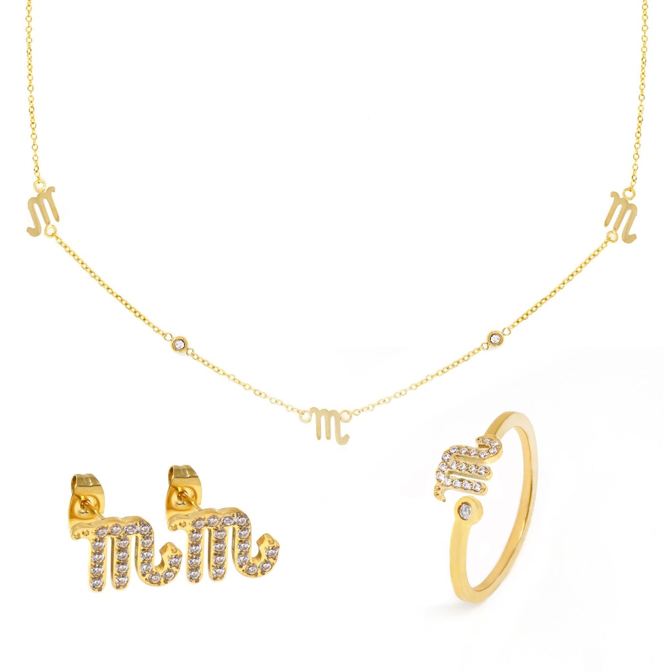 The Scorpio Gift Set in Yellow Gold is crafted from Stainless Steel with sparkling CZ feature stones.