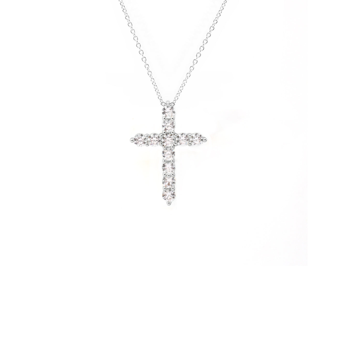 The cross pendant, beautifully adorned with sparkling round cubic zirconia stones, catches the light from every angle - creating a subtle yet radiant statement of faith and style.