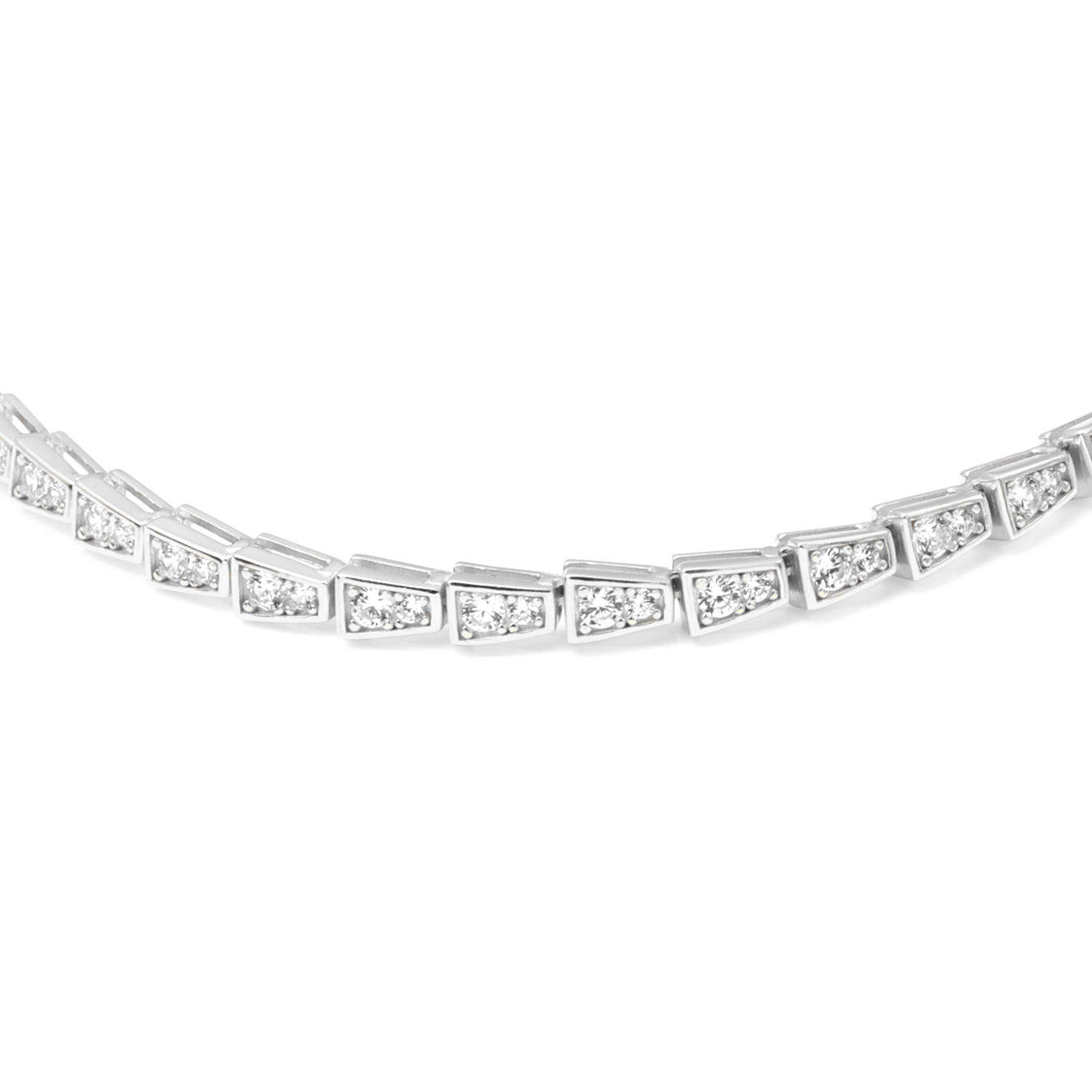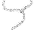 Crafted from luminous sterling silver, this necklace features a bold link-style chain, with round CZ stones set into each link for a refined, continuous sparkle. The fluid silhouette wraps smoothly around the neckline, while the box clasp ensures a secure, seamless finish.