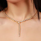 Crafted from luminous sterling silver and plated in yellow gold, this necklace features a bold link-style chain, with round CZ stones set into each link for a refined, continuous sparkle. The fluid silhouette wraps smoothly around the neckline, while the box clasp ensures a secure, seamless finish.