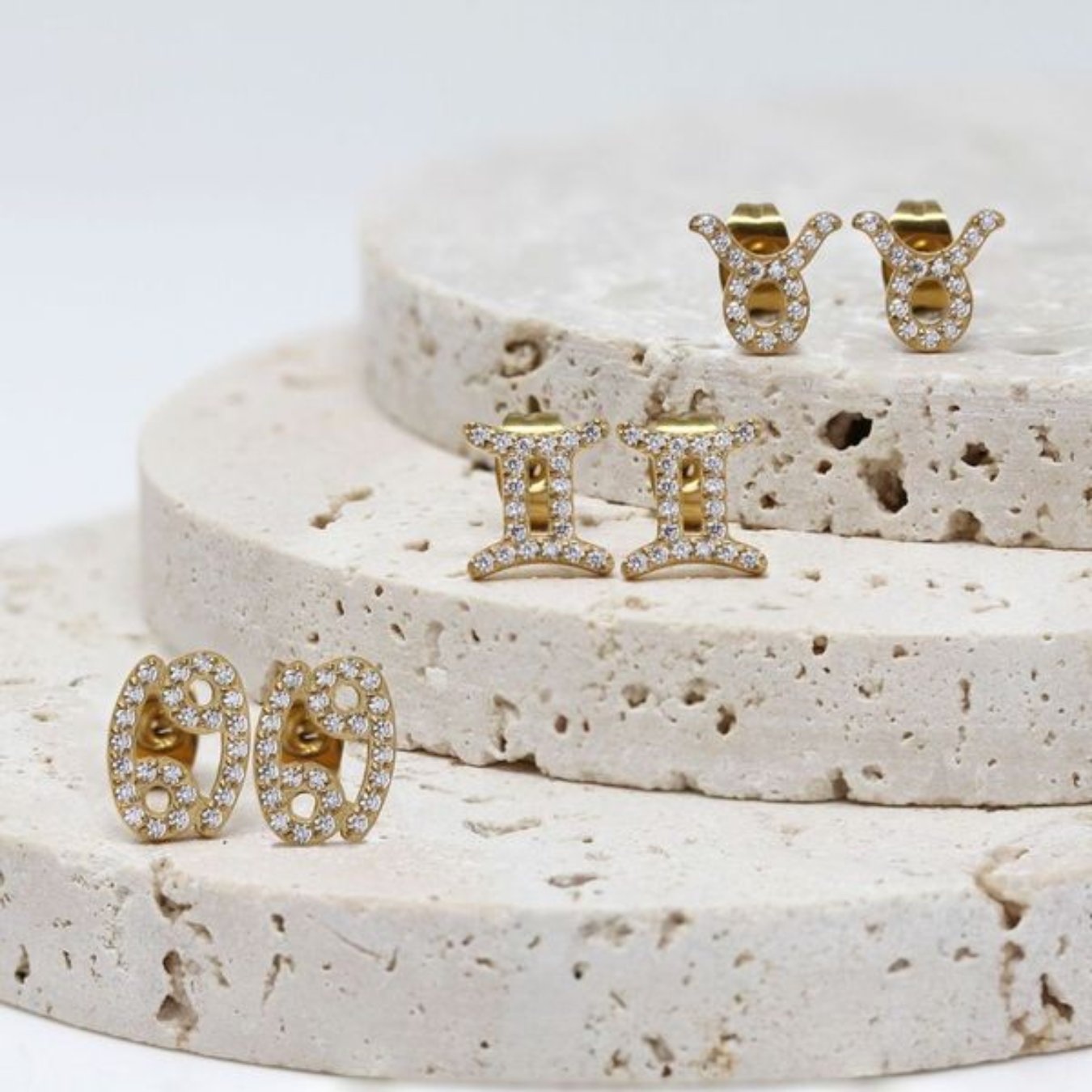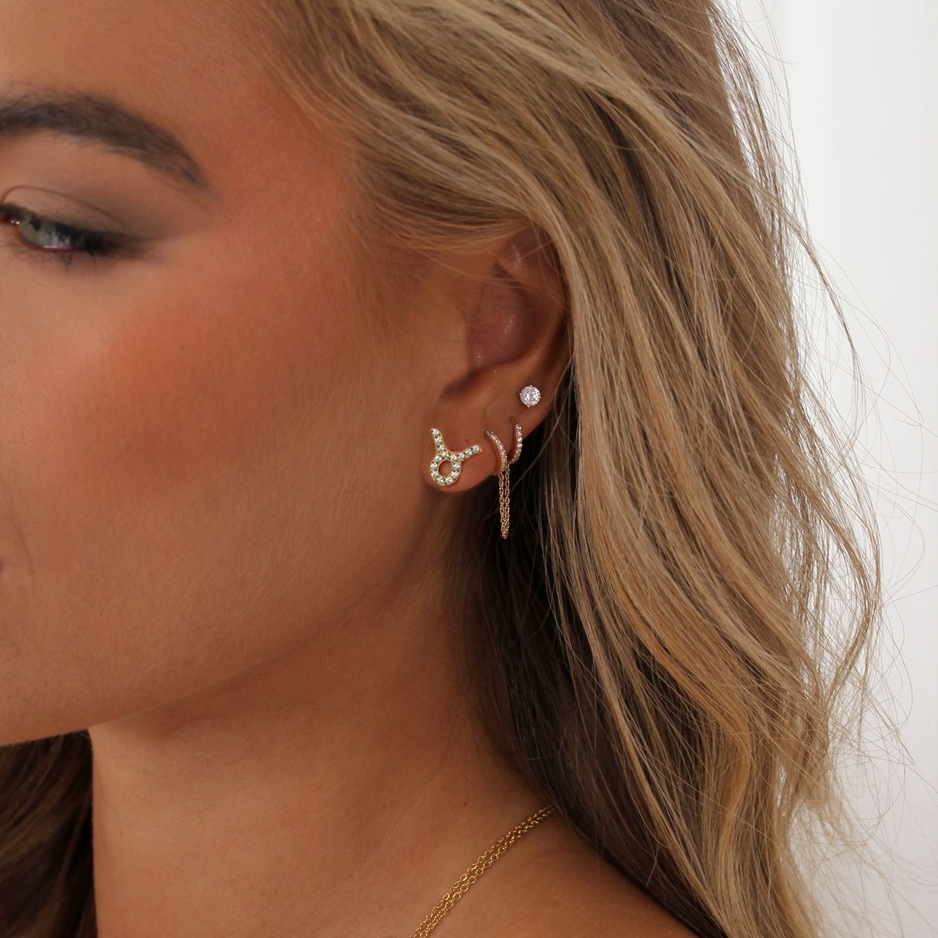 This stunning Taurus Earrings in Yellow Gold are crafted from stainless steel and feature dazzling CZ feature stones.