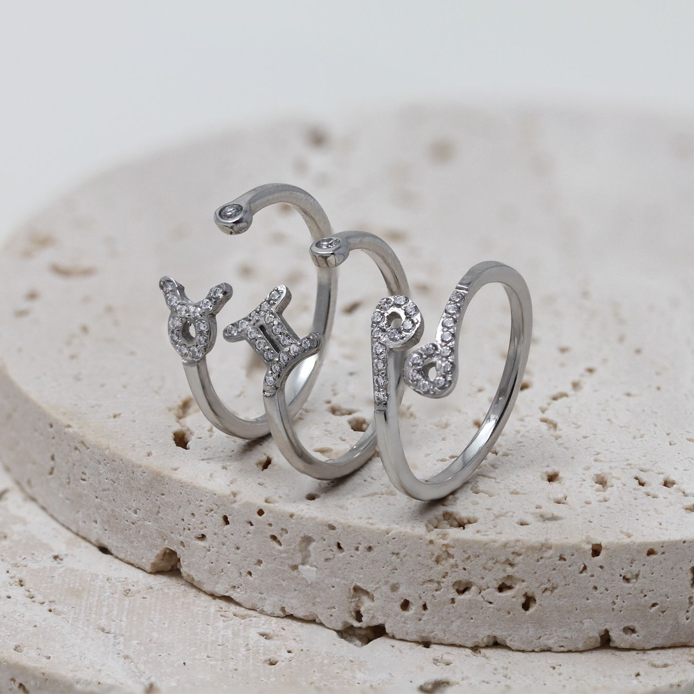 This stunning Taurus Ring in Silver is crafted from stainless steel and features dazzling CZ feature stones on an adjustable ring.