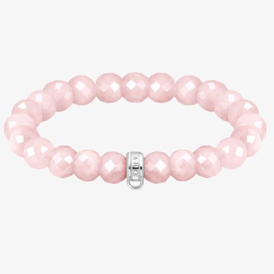 The Thomas Sabo As We Love 19cm Rose Quartz Oval Bead Bracelet is made from radiant oval rose quartz beads and fastens with a lobster clasp.