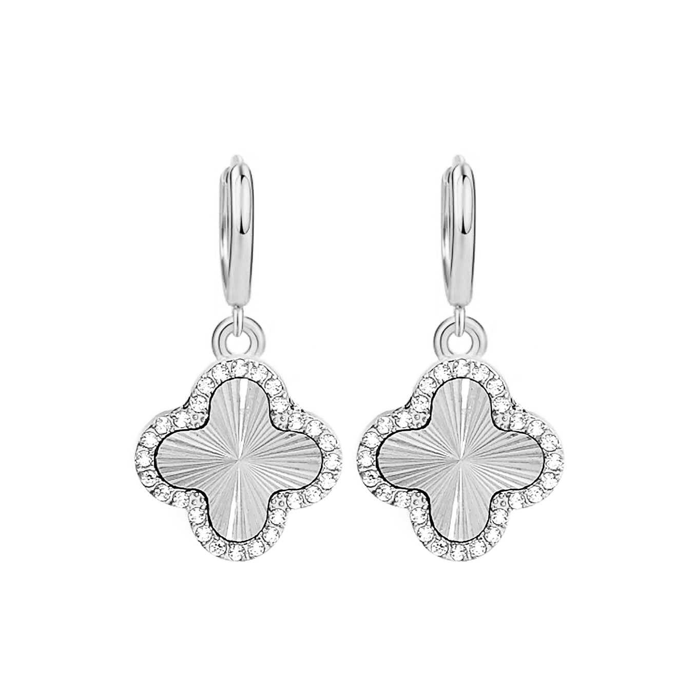 Crafted from durable stainless steel, the hoops offer lasting shine and resistance to tarnish, making them perfect for daily wear. Each clover pendant is adorned with sparkling round cubic zirconia stones meticulously set along the edges, creating a radiant shimmer with every movement.