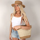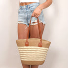 Inspired by golden hours and getaway vibes, the Valencia Bag in Tan is a must-have from Say It With’s new accessories range. This woven beauty features subtle stripe detailing and comfortable shoulder straps, blending laid-back charm with everyday practicality.